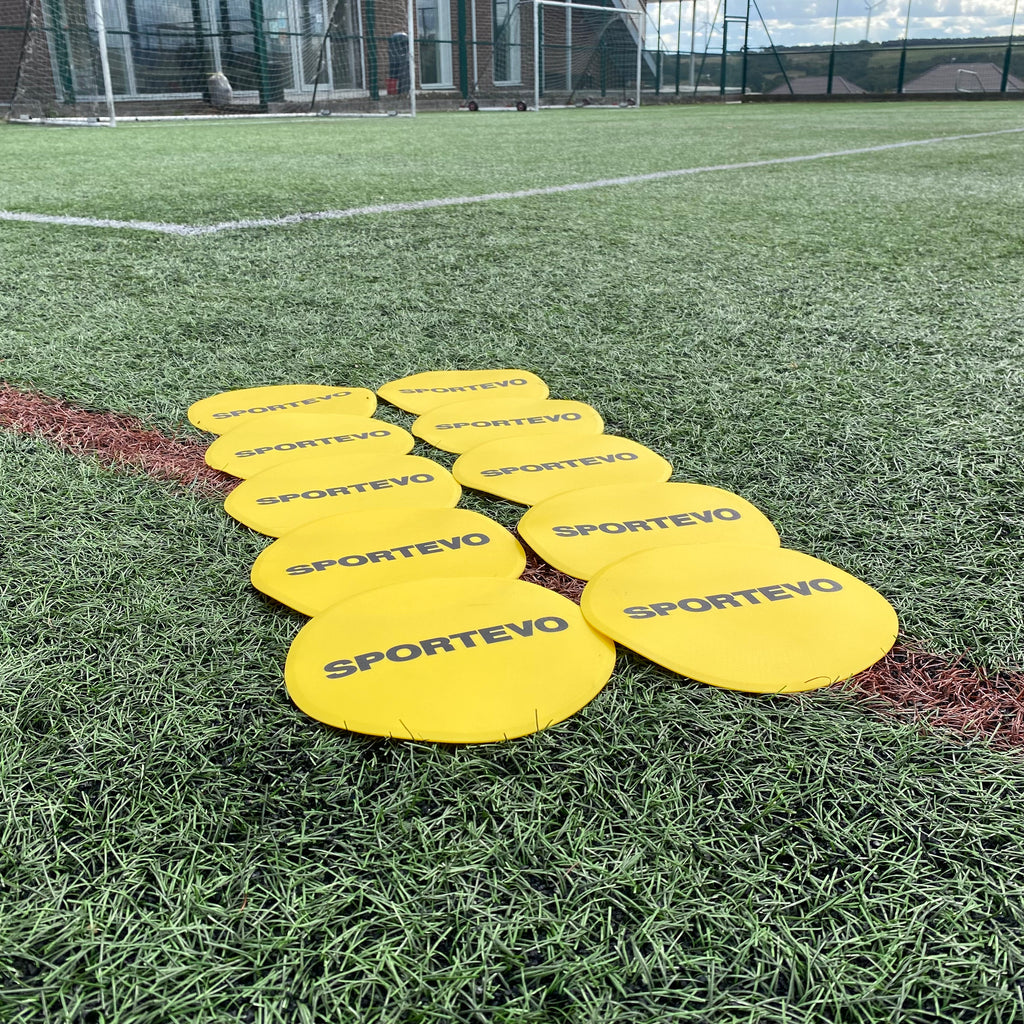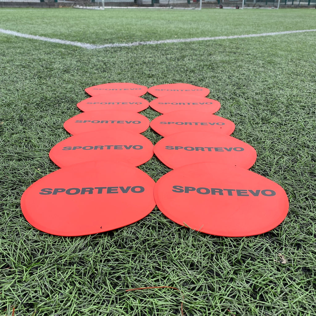Upgrade your training sessions with SportEvo Flat Disc Markers – the ultimate tool for coaches, schools, and sports clubs looking to enhance agility, spatial awareness, and drill organization. Manufactured from high-quality, weatherproof PVC, these flat markers are ideal for indoor and outdoor use on any surface, including grass, turf, or court flooring.