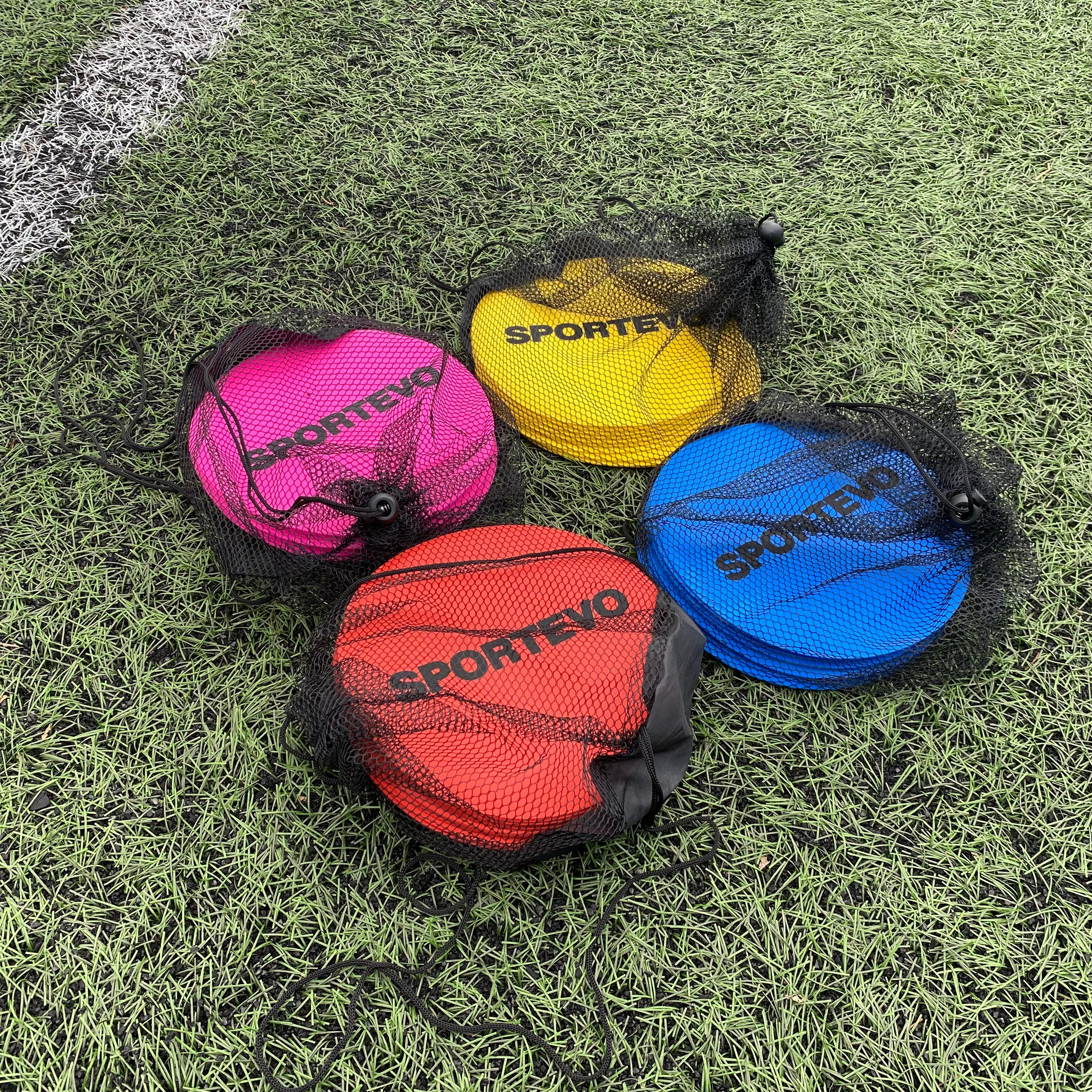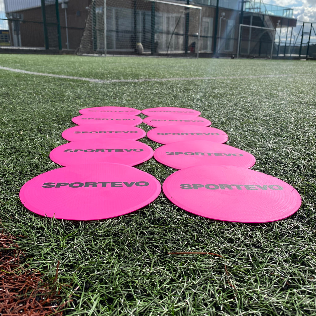 Choose from Pink, Yellow, Red, or Blue to match your team colours or create easily identifiable training zones. Available in packs of 10, these markers are lightweight, stackable, and come with a convenient carry bag for easy transport and storage.