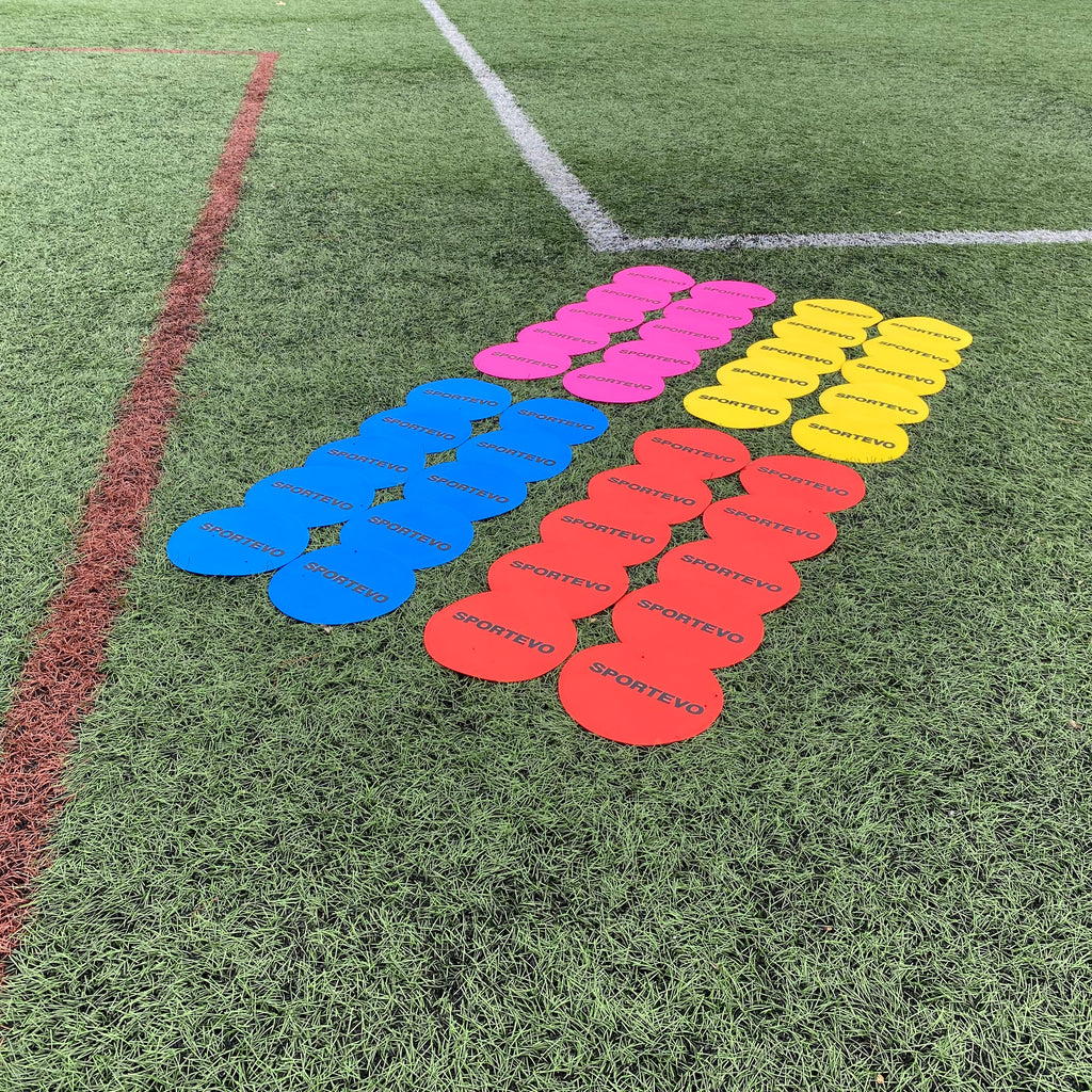 Each marker has a 19cm diameter and sits low to the ground to minimize tripping hazards while maintaining excellent visibility. Whether you're coaching football, rugby, athletics, or general fitness, these non-slip markers provide a safe and effective way to set boundaries, zones, or drill areas.
